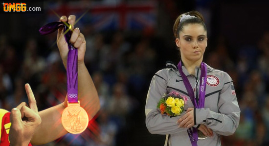 While many are accusing Maroney of exhibiting poor sportsmanship by frowning on the medal stand, OMGG.com captured this shot of Izbasa taunting the 16-year old American.