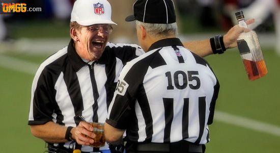 OMGG.com photographers spotted a couple of the replacement officials sharing a laugh (and a drink) before last night’s Monday Night Football game.