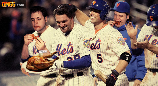 “We’re a very superstitious team, and we’re committed to winning,” relief pitcher Tim Byrdak told OMGG.com. “If we sweep the Cubs this week, I can guarantee you we’re eating Mr. Met next.”