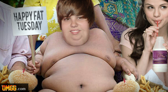 OMGG.com photographers snapped this photo of Justin Bieber celebrating Fat Tuesday with girlfriend Selena Gomez.