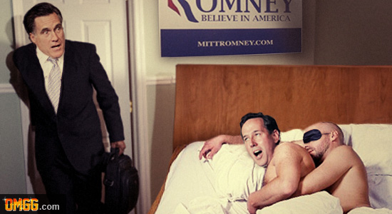 Romney was said to be furious upon catching his trusted advisor making love to former Pennsylvania senator Rick Santorum in his Marriott suite Monday morning.