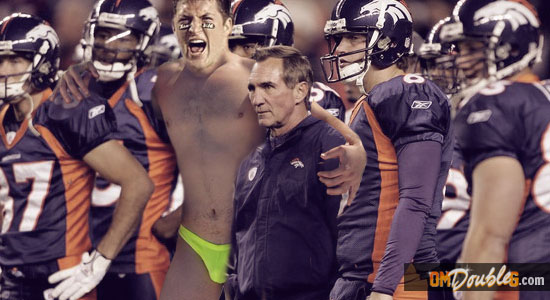 The overrated signal caller, known for his weak arm and strong religious beliefs, modeled the man panties in both print and TV advertisements to the delight of Denver fans.